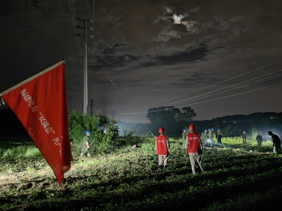 图为7月30日晚,国网尤溪县供电公司福建电力“双满意”员服务队对10千伏引水线B线进行抢修。谢章辉/摄